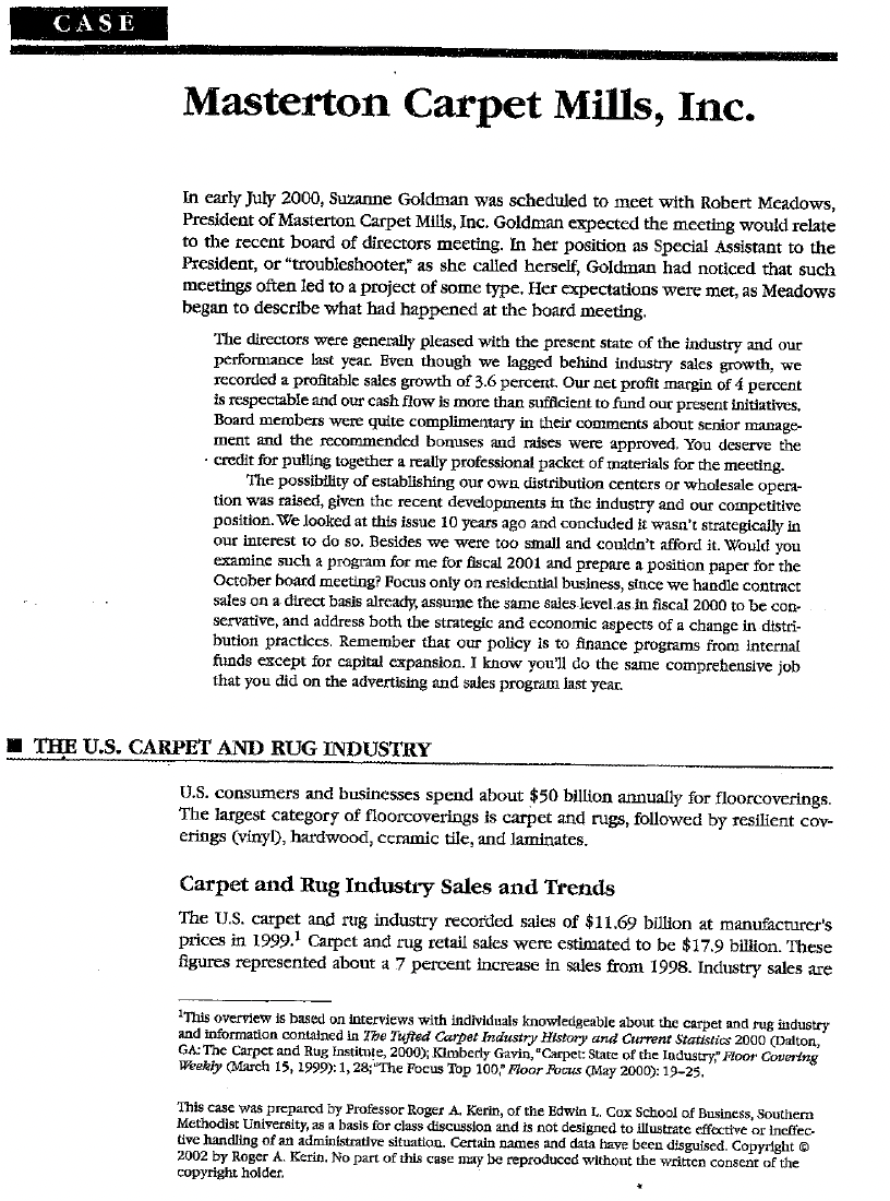 Case Masterton Carpet Mills Inc In Early July 2000 Chegg Com
